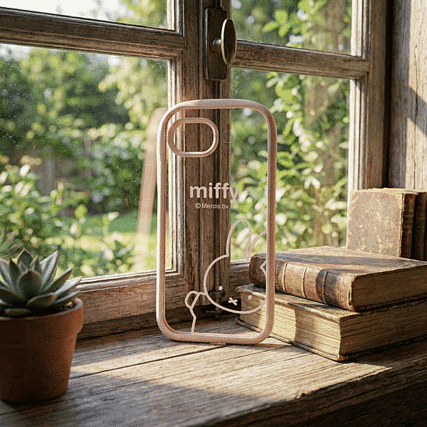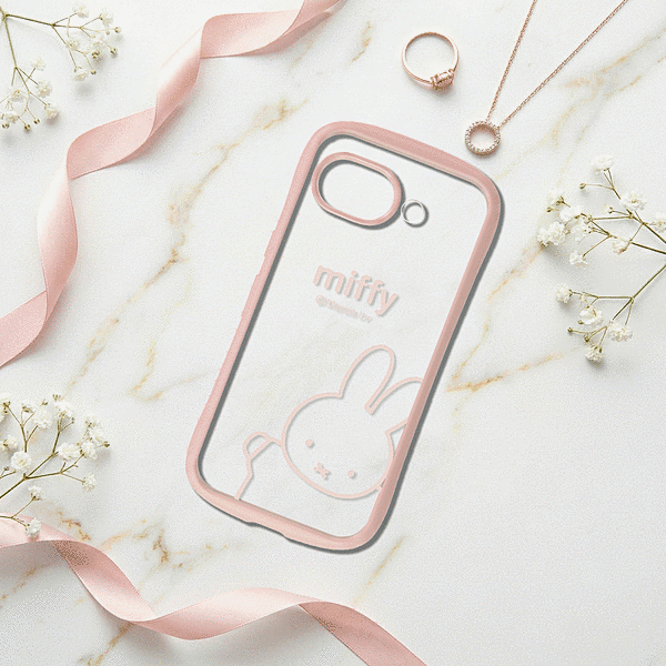 ミッフィーがひょっこり覗き込む姿が可愛いらしいデザインと、衝撃に強い安心感を兼ね備えたハイブリッドケース。