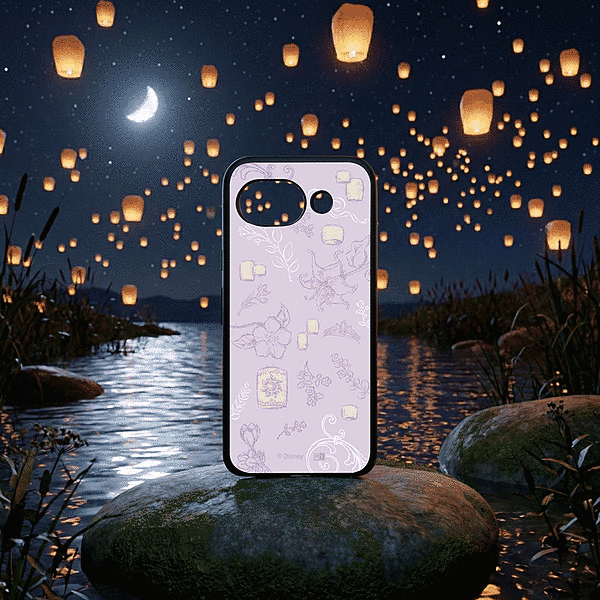 表面硬度2Hの背面に、ラプンツェルの世界観でやわらかなタッチのアイコン風デザインをあしらったハイブリッドケース。