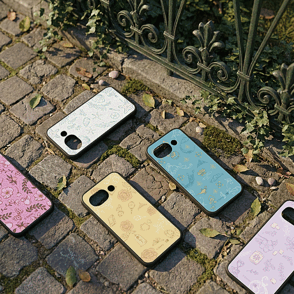 表面硬度2Hの背面に、ベルの世界観でやわらかなタッチのアイコン風デザインをあしらったハイブリッドケース。