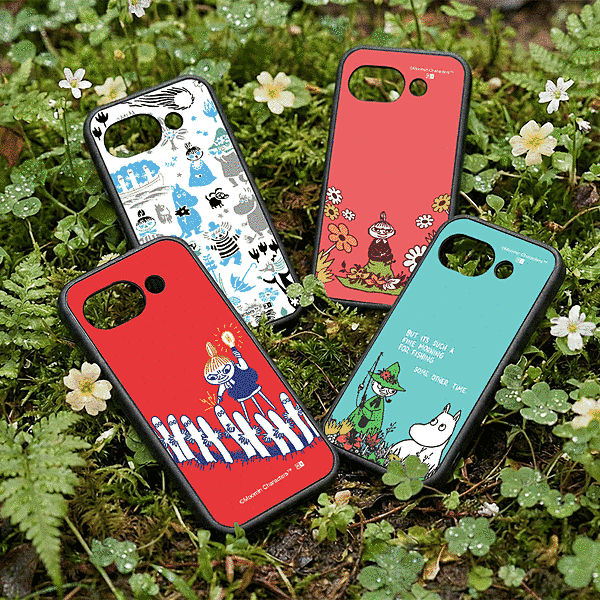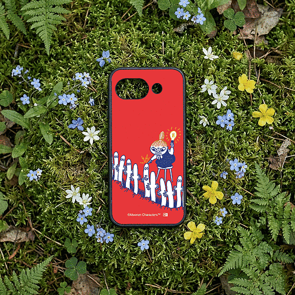 表面硬度2Hの背面にリトルミイとニョロニョロの可愛いデザインをあしらったハイブリッドケース。