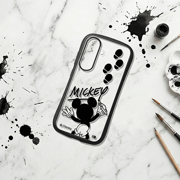 ミッキーのシックで可愛いらしいデザインと、衝撃に強い安心感を兼ね備えたハイブリッドケース。
