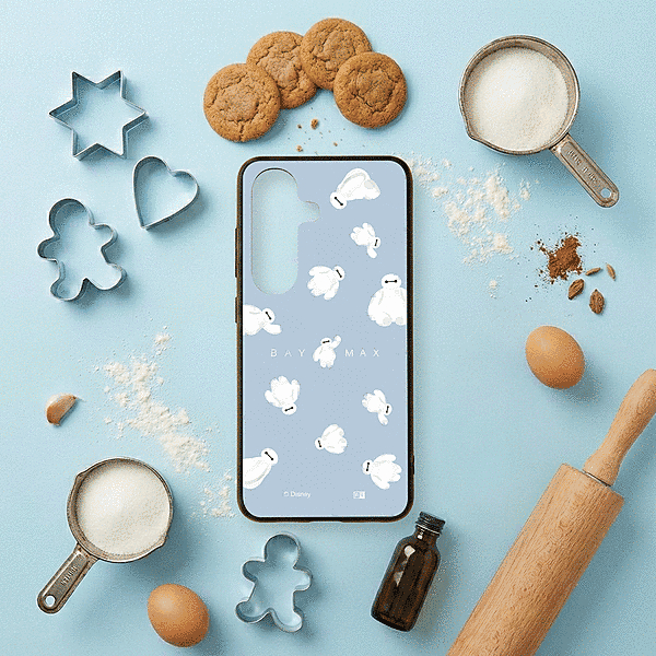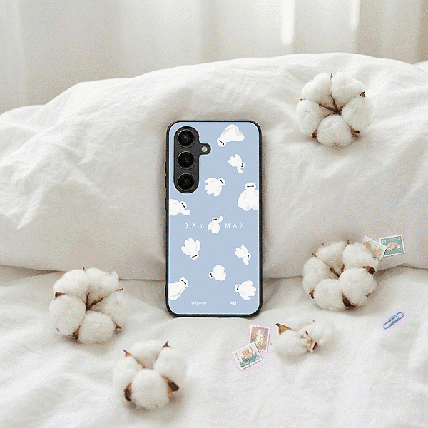表面硬度2Hの背面に、かわいいベイマックスがふわふわ浮かんでいるようなデザインをあしらったハイブリッドケース。