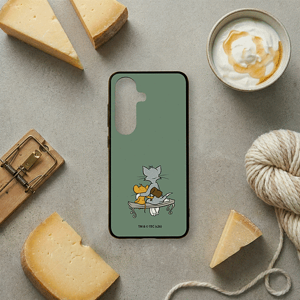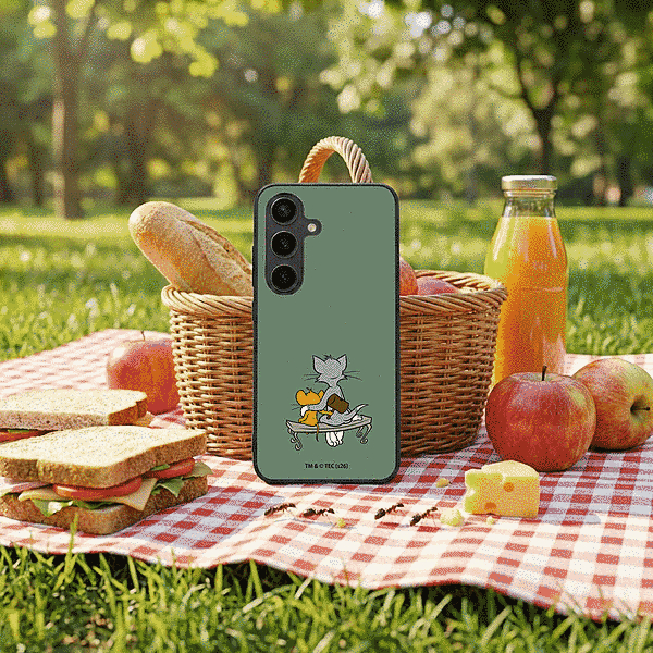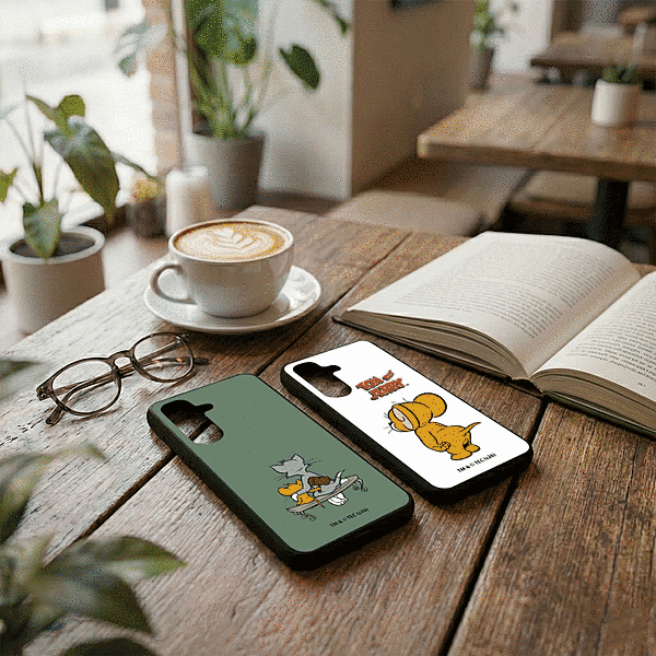 表面硬度2Hの背面に、トムとジェリーらしいデザインをあしらったハイブリッドケース。