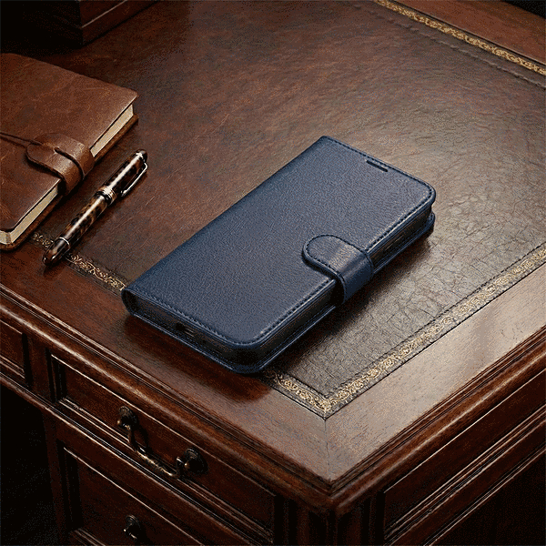 手帳型レザーケース シンプル マグネット ダークネイビー
