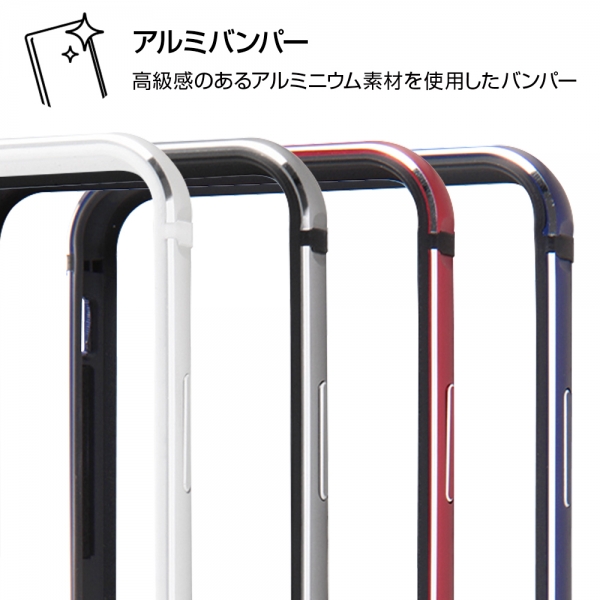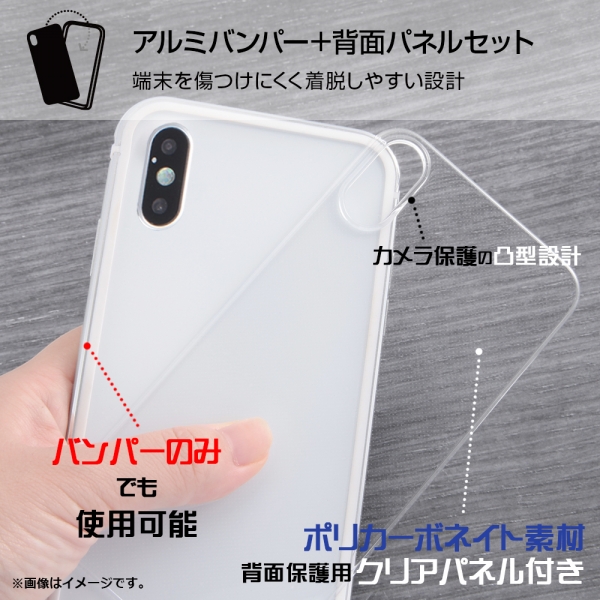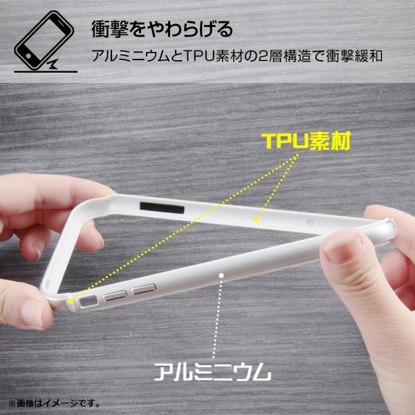 硬度3Hクリアパネル付き バンパーのみでも使用可能。高級感のあるアルミニウム素材を使用したバンパー。アルミニウムとTPU素材の2層構造で衝撃をやわらげる!背面パネルは傷がつきにくい鉛筆硬度3H仕様。端末とパネルが貼り付いて発生する粘着痕を軽減。