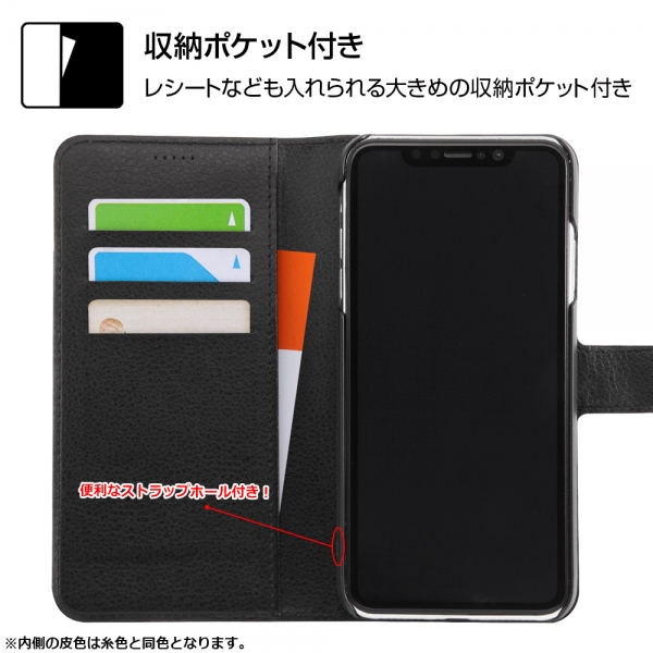 カード収納+スタンド機能付き。動画視聴などに便利なスタンド機能付き。ICカードポケット・収納ポケット付き。マグネット式なのでケースの開閉が簡単に行える。ケースの蓋を閉じたまま通話ができる。