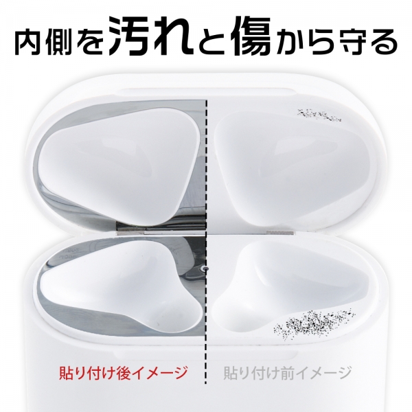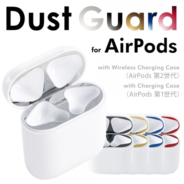 ゴミが入りやすいAirPodsの内側を守る専用シール。AirPods 第2世代(AirPods with Wireless Charging Case)第1世代(AirPods with Charging Case)に対応。高級感のあるメタリックカラー。