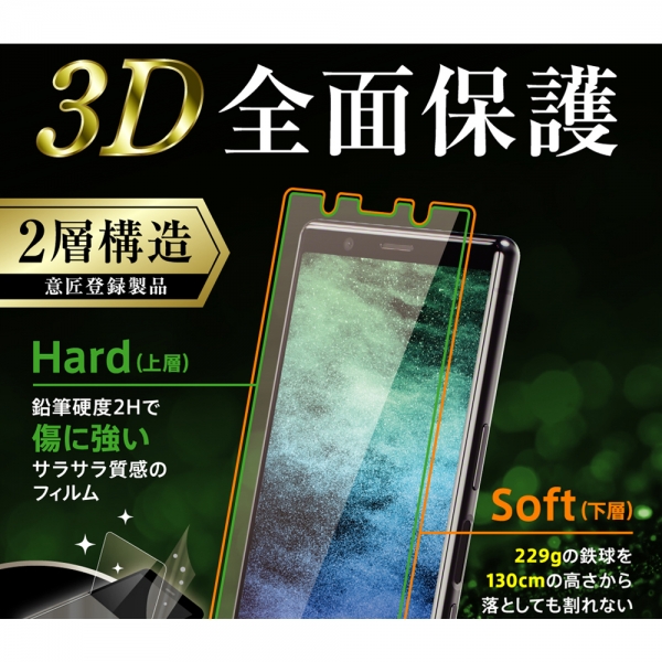 鉛筆硬度2HのPETフィルムTPU素材(熱可塑性ポリウレタン樹脂)特有の弾力性と柔軟性により、通常のPETフィルムでは貼る事のできなかった画面の端までしっかり保護する事ができます。薄型のため指に引っかかりにくく、厚みを感じません。何度も位置決めが行えて、同時に画面に付いているほこり等を吸着するため、ほこり混入を軽減し安心して貼り付けることができます。太陽光や蛍光灯の写りこみが少なく不快なギラツキを抑え、サラサラした質感がタッチ操作をスムーズにします。