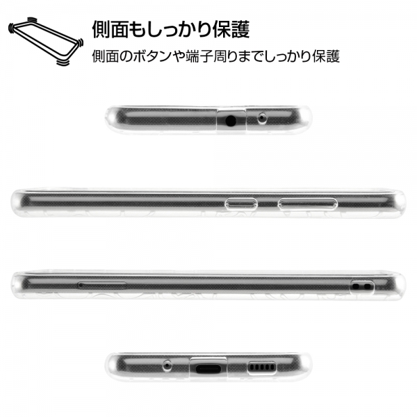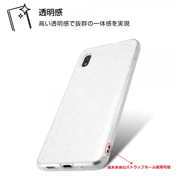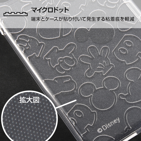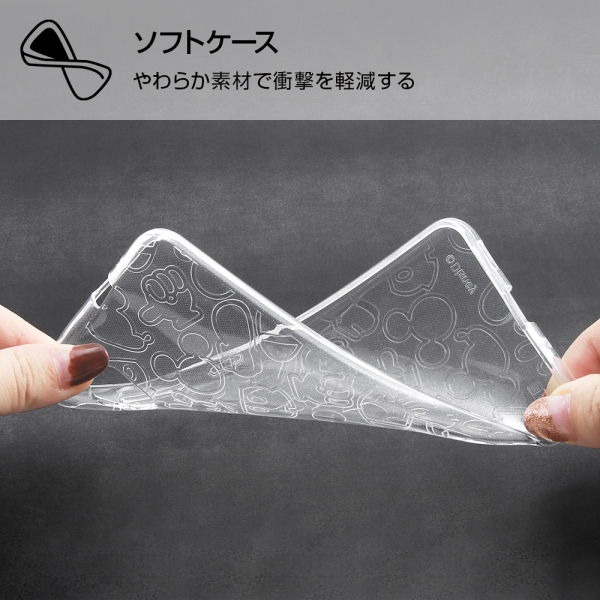 ミッキーマウスのアイコンが散りばめられた可愛いラメ入りケース。高い透明感で抜群の一体感を実現。衝撃をやわらげる柔らか素材。ボタンや端子周りまで保護。