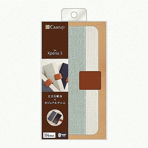 手帳型ファブリックケース デニム&帆布 Canvas Line/アイスブルー
