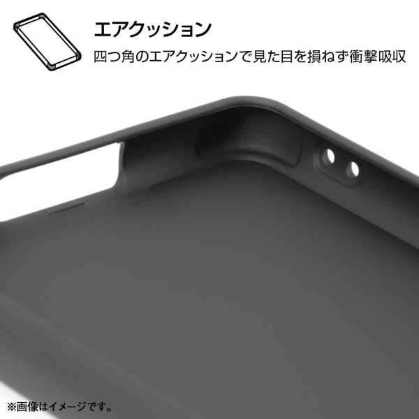 赤ちゃん肌のようにさらさらな手触り。しっとりさらさらなラバーコーティングにより指紋が付きにくい。側面は衝撃に強いTPU素材。四つ角にはエアクッション内蔵。ストラップホール付き。