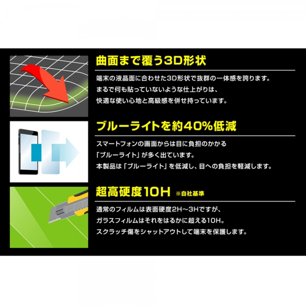 ガラスフィルム 防埃 3D 10H アルミノシリケート 全面保護 ブルーライトカット/ブラック
