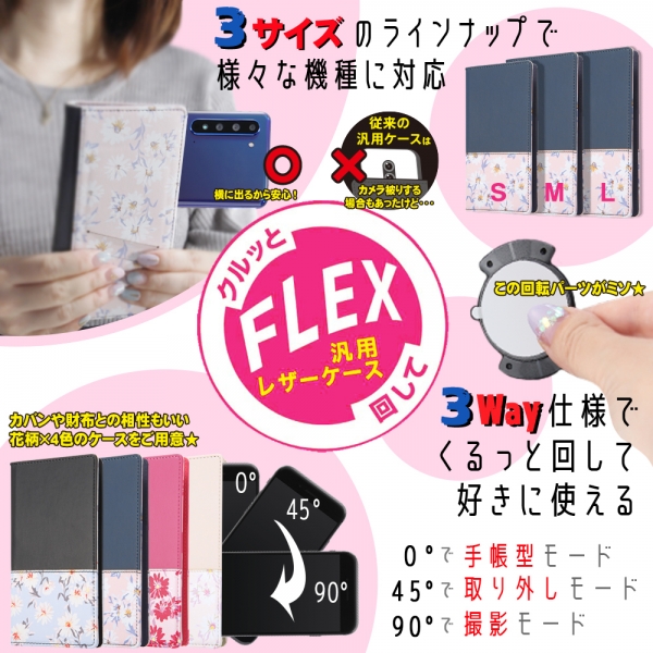 手帳型ケース FLEX M/花柄_ダークネイビー