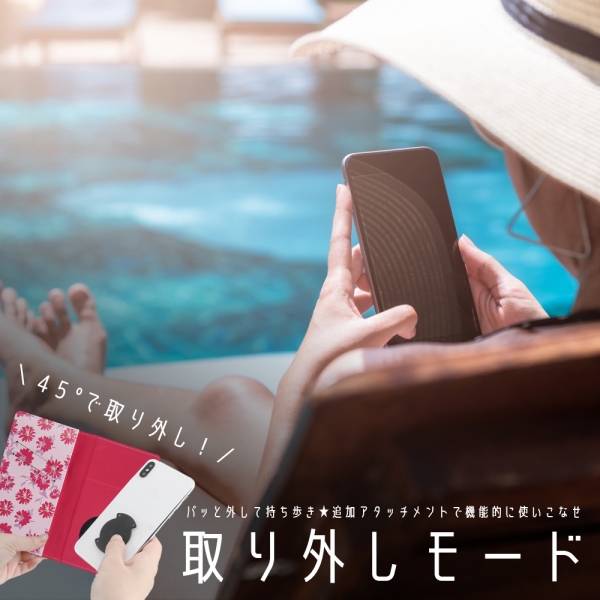 3way クルっと回して簡単に色々な使い方ができる。対応機種サイズ:縦 15.1cm 横 7.7cm 厚み 1.2cm。端末をしっかり保護する手帳型。取外しも簡単。様々なオプションで使い方色々。90度回転させて、写真や動画の撮影もラクラク。
