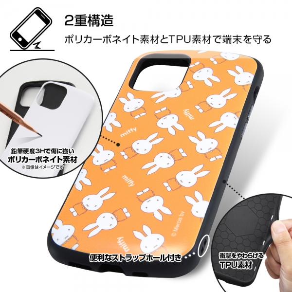 保護ケース MiA 衝撃吸収 バンパー ハイブリッドケース/ミッフィー/オレンジ_総柄