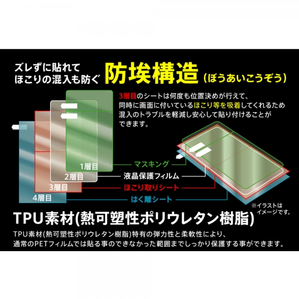 何度も位置決めが行えて、同時に画面に付いているほこり等を吸着するため、ほこり混入を軽減し安心して貼り付けることができます。229gの鉄球を130cmの高さから落としても割れない特有の弾力性と柔軟性により、通常のPETフィルムでは貼る事のできなかった画面の端までしっかり保護スマートフォンのLCDパネルからは目に負担のかかる「ブルーライト」が多く出ています。本製品は「ブルーライト」を低減し、目への負担を軽減します。