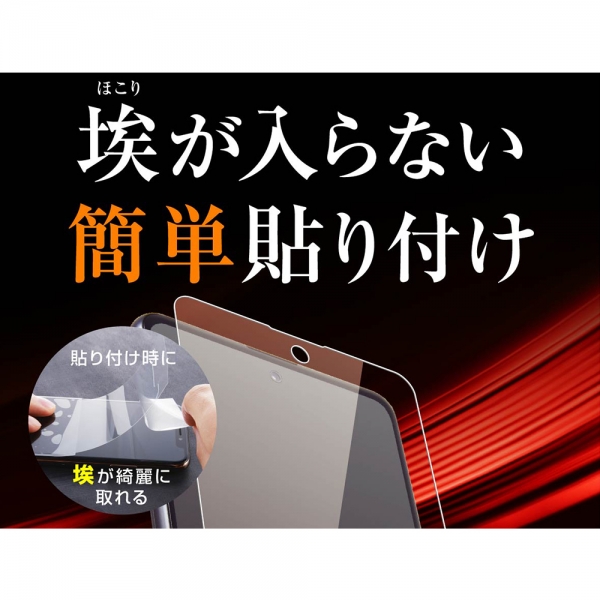 何度も位置決めが行えて、同時に画面に付いているほこり等を吸着するため、ほこり混入を軽減し安心して貼り付けることができます。229gの鉄球を130cmの高さから落としても割れない特有の弾力性と柔軟性により、通常のPETフィルムでは貼る事のできなかった画面の端までしっかり保護ヘイズ(光散乱)を抑えることで画面が白くボケることを抑えくっきり鮮やか。