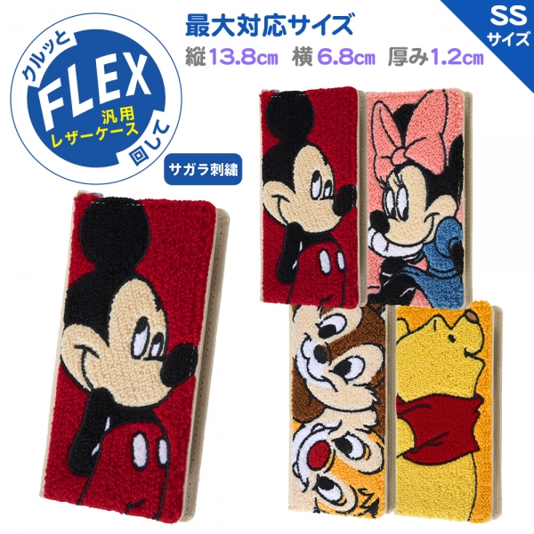 手帳型ケース FLEX サガラ刺繍 SS/ミッキー
