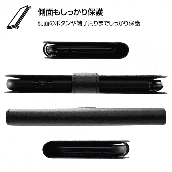 カード収納+スタンド機能付き。動画視聴などに便利なスタンド機能付き。お好きなカードが入れられるICカードポケット・収納ポケット付き。マグネット式なのでケースの開閉が簡単に行える。ケースの蓋を閉じたまま通話ができる。