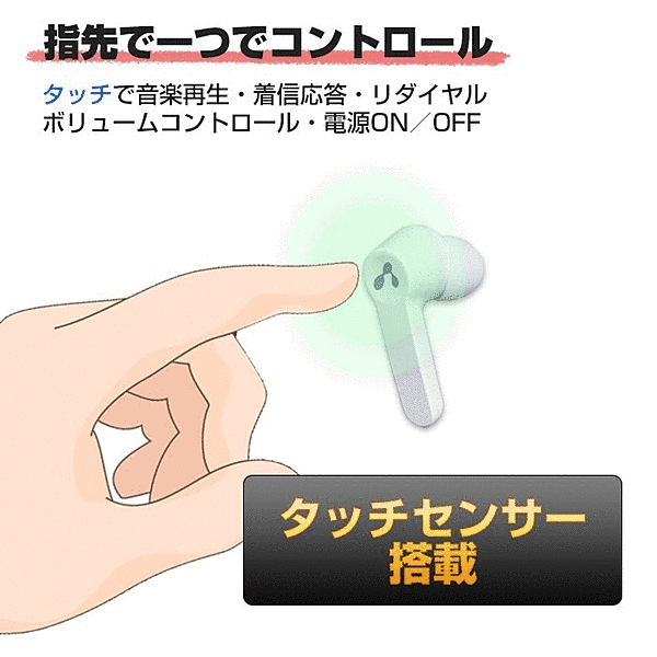 超簡単操作タッチセンサー搭載AUTO PAIRING 自動接続音楽再生時間最大約5時間圧倒的な高音質 AAC対応