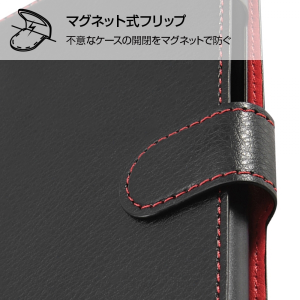 耐衝撃 手帳型レザーケース シンプル マグネット/ブラック/レッド