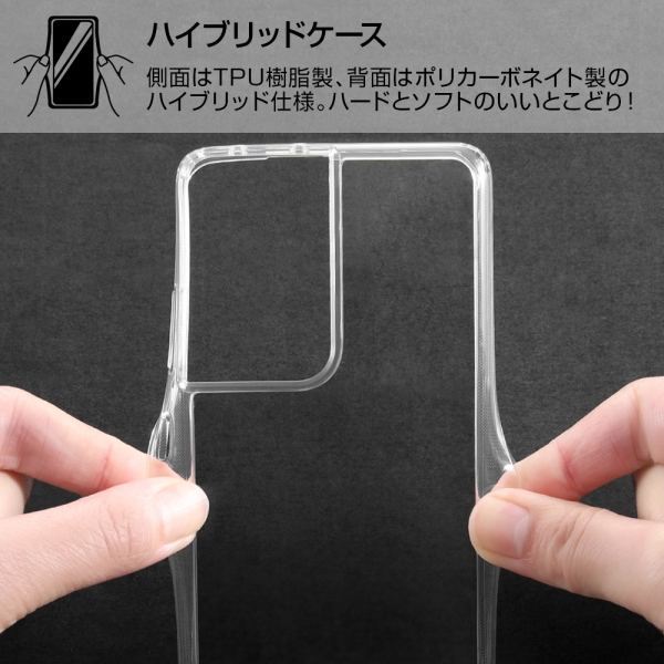 衝撃吸収性のあるTPU×摩擦によるキズを低減するポリカーボネイト。鉛筆硬度2Hで傷に強い。衝撃をやわらげる柔らか素材&四つ角エアクッション。カメラに傷が付きにくい凸型設計。マイクロドット加工で側面の粘着痕を軽減。