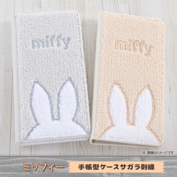 手帳型ケース FLEX サガラ刺繍 L/ミッフィー_ベージュ