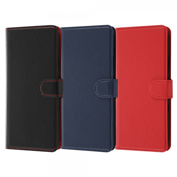 耐衝撃 手帳型レザーケース シンプル マグネット/レッド