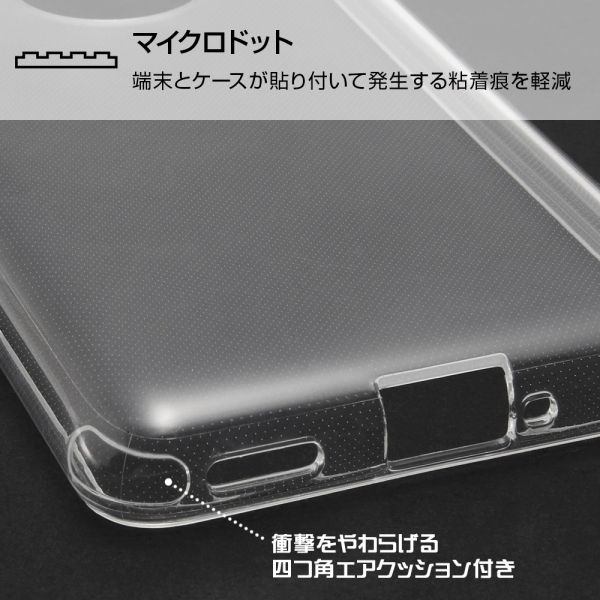 グリップ感も良く、衝撃吸収性のあるソフトな素材。高い透明感で抜群の一体感を実現。衝撃をやわらげる柔らか素材&四つ角エアクッション。カメラに傷が付きにくい設計。マイクロドット加工で側面の粘着痕を軽減。