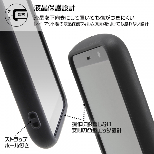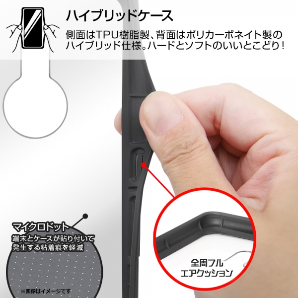 四つ角だけでなく、側面全周が耐衝撃構造。全周フルエアクッション。鉛筆硬度2Hで傷に強いポリカーボネイト素材。衝撃をやわらげるTPU素材。デザインを損ねない側面のストラップホール。
