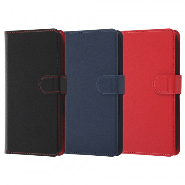 耐衝撃 手帳型レザーケース シンプル マグネット/ブラック/レッド