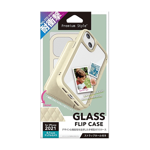 「PG-21KGF08IV」は、オリジナリティと機能性を追求した2021年 iPhone 6.1inch デュアルカメラ用 ガラスフリップケースです。MIL規格(MIL-STD-810G)の2項目、落下・振動に準拠した試験をクリアしたタフ設計。ケースの内面にはマグネットロック機能搭載でラクラクカバーを開閉することが可能。背面はクリアガラス仕様なのでシールや写真を入れて自分好みにカスタマイズすることが出来ます。通勤通学やお買い物に便利なカードポケット・お手持ちのストラップをつけて落下を防げるストラップホール付き。特許取得済みです。
