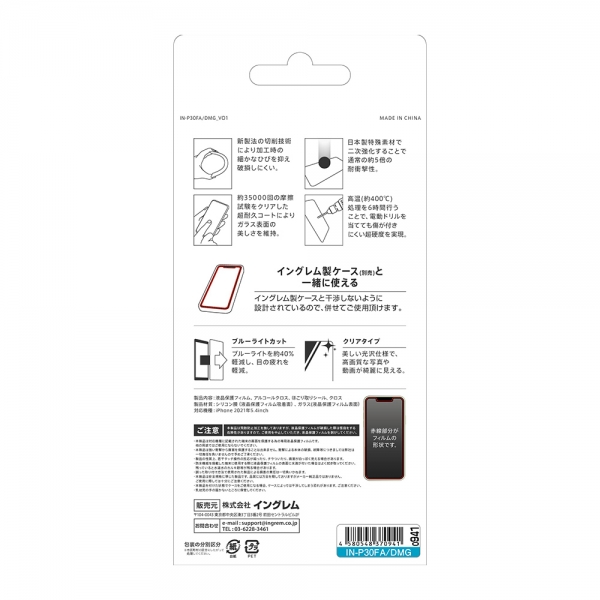 ブルーライトカット/クリアタイプ。新製法の切削技術により加工時の細かなひびを抑え破損しにくい。日本製特殊素材で二次強化することで通常の約5倍の耐衝撃性。約35000回の摩擦試験をクリアした超耐久コートによりガラス表面の美しさを維持。高温(約400℃)処理を6時間行うことで、電動ドリルを当てても傷が付きにくい超高度を実現。