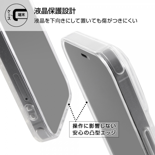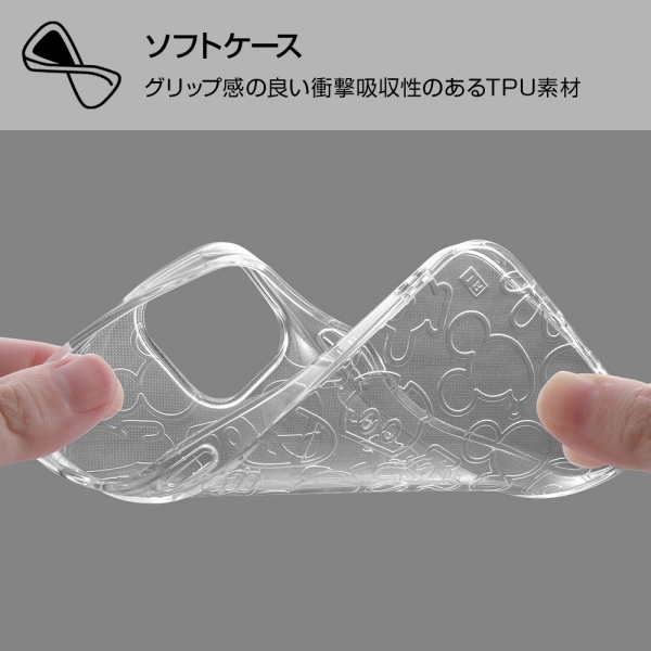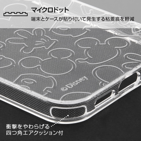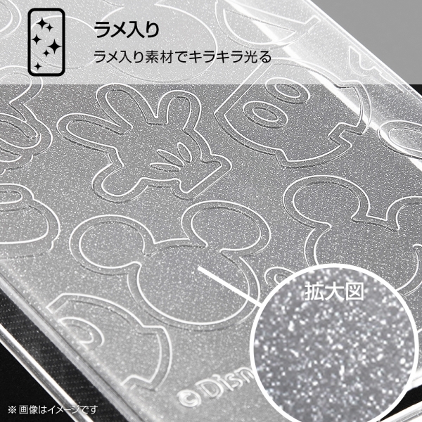 ミッキーマウスのアイコンが散りばめられた可愛いラメ入りケース。カメラに傷が付きにくい凸型設計。高い透明感で抜群の一体感を実現。衝撃をやわらげる柔らか素材×四つ角エアクッション。マイクロドット加工で背面の粘着痕を軽減。